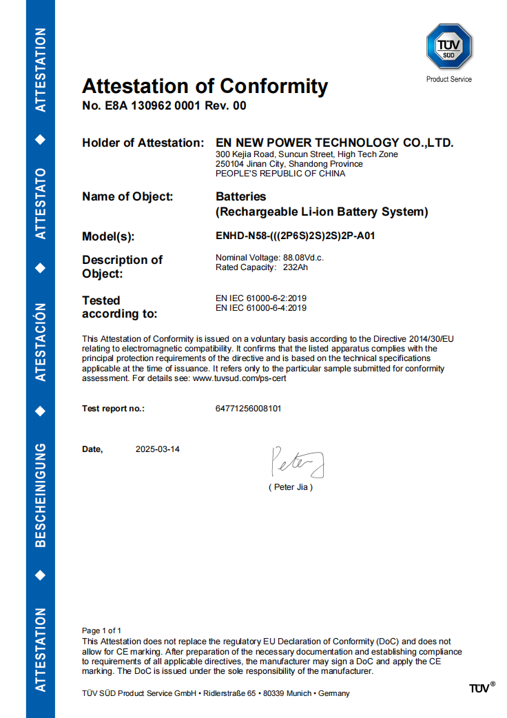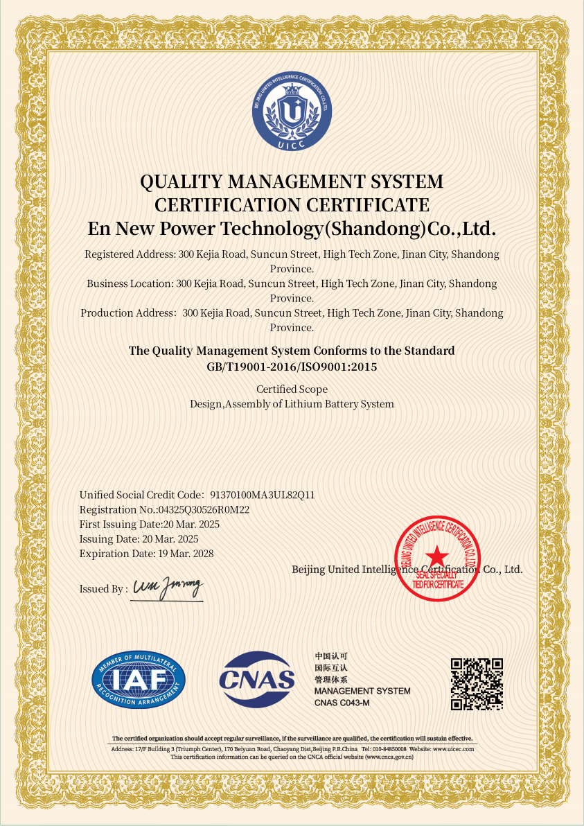A EN New Power Technology (Shandong) Co., Ltd., estabelecida em 2020, como subsidiária integral de uma empresa listada, é especializada em sistemas de energia de nova geração para maquinário off-road e soluções de armazenamento de energia em redes inteligentes. Como empresa intensiva em tecnologia, integramos P&D, fabricação e vendas em toda a nossa cadeia de valor.